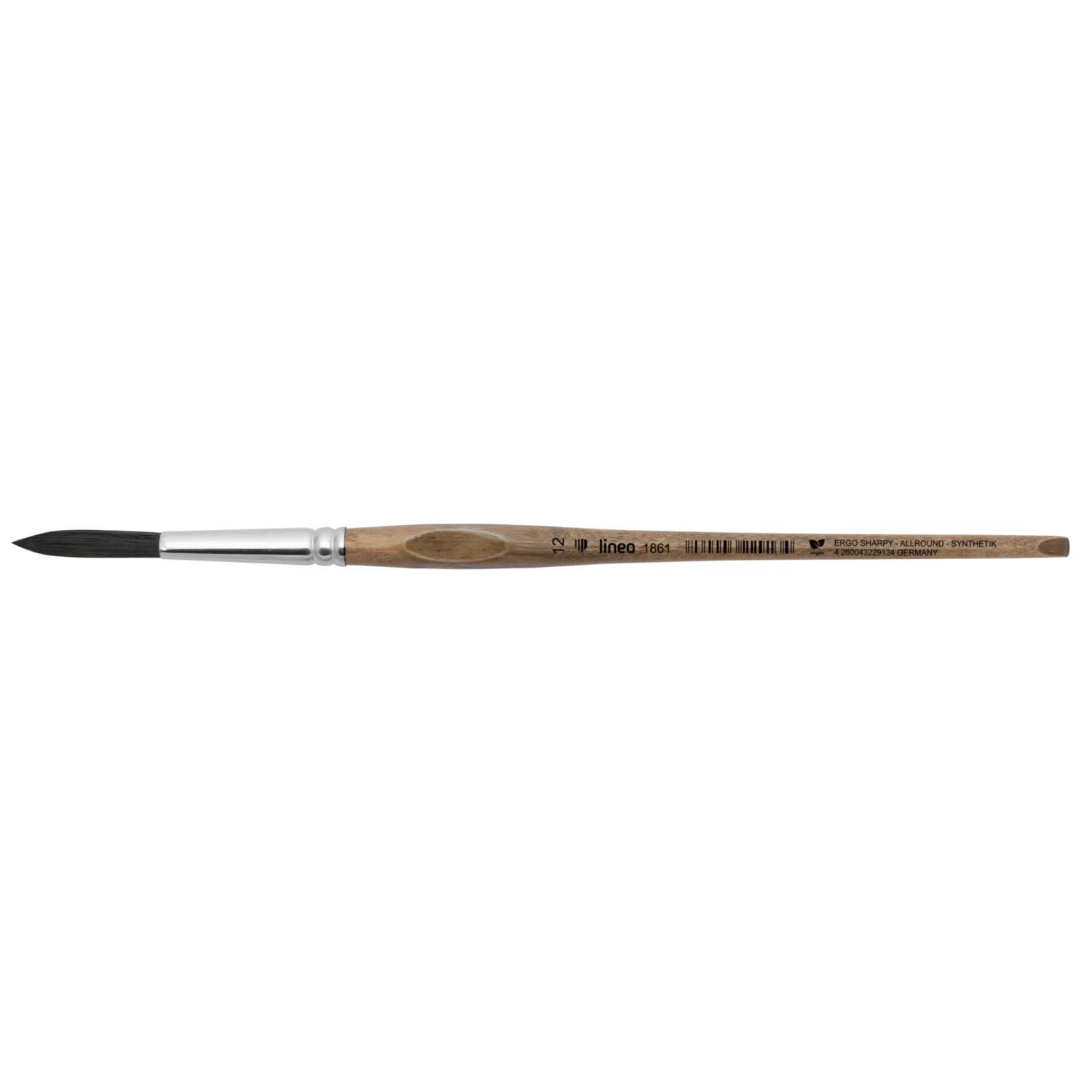 Der lineo ERGO SHARPY ALLROUND Serie 1861, Schlepper ist ein vielseitiger Pinsel mit feiner Spitze für präzise Linien und gleichmäßige Farbverläufe. Die schwarzen ERGO SHARPY ALLROUND Synthetikfasern eignen sich für Aquarell-, Acryl- und Ölfarben und ermöglichen kontrollierte, fließende Striche.