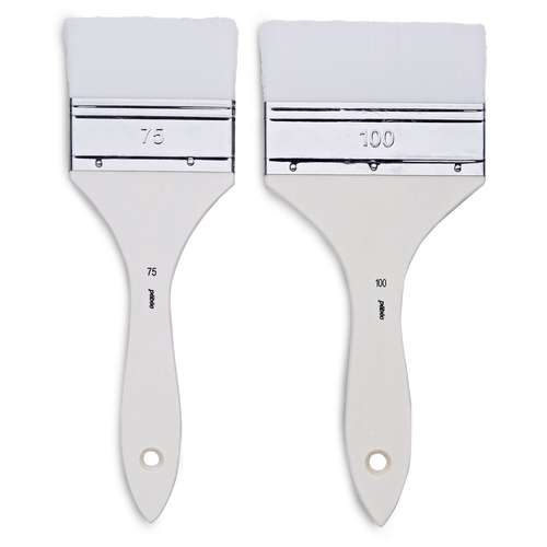 Spalterpinsel-Set mit strapazierfähigen Synthetikfasern, ideal für gleichmäßigen Farbauftrag auf großen Flächen. Perfekt für Grundierungen, Lasuren, Firnis und Medien wie Gesso. Inhalt: 2 Pinsel, Größen 75 und 100.