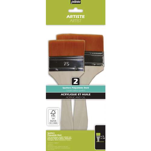 Das pébéo Spalterpinsel-Set 2 ist ideal geeignet für Öl und Acryl. Mit feinen, geschmeidigen Taklon-Synthetikborsten. Inhalt: 2 Pinsel, Größen 75, 100.